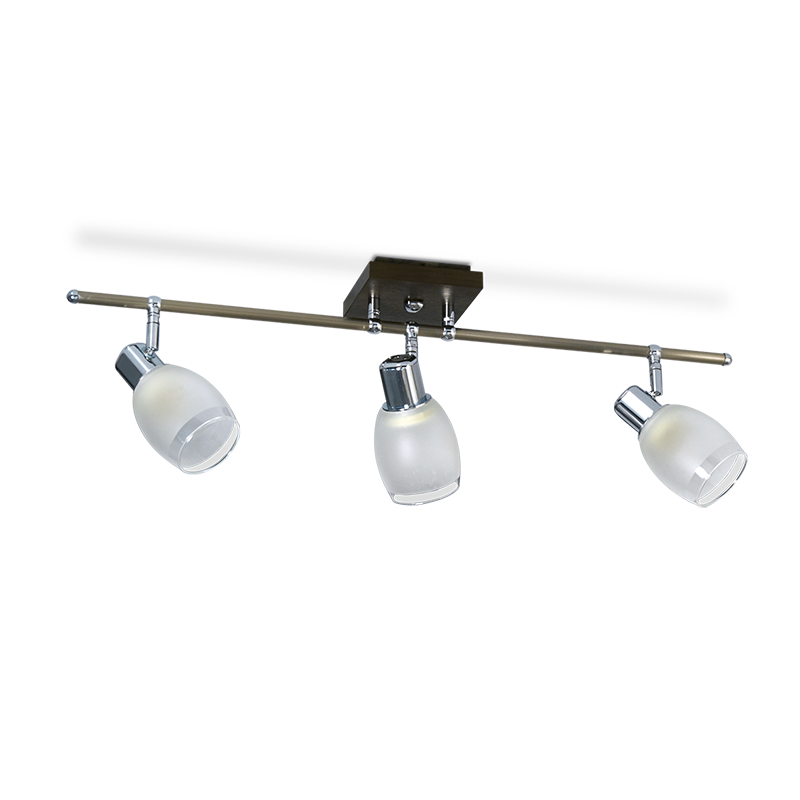 Sistema de iluminación con 3 luces, spots dirigibles y tulipas de vidrio que permiten ajustar la dirección de la luz para una iluminación versátil y elegante.