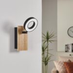 Un diseño versátil y contemporáneo que combina la calidez de la madera con elegantes detalles en negro. Su spot LED dirigible permite orientar la luz según la necesidad, ofreciendo iluminación funcional y decorativa. Puede colocarse tanto en techo como en pared, adaptándose a distintos espacios y estilos.