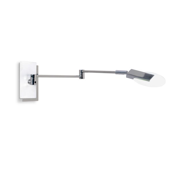 Aplique elegante y funcional con brazo móvil y pantalla de tela . Su acabado cromado aporta un toque moderno, ideal para lectura o iluminación puntual en interiores.