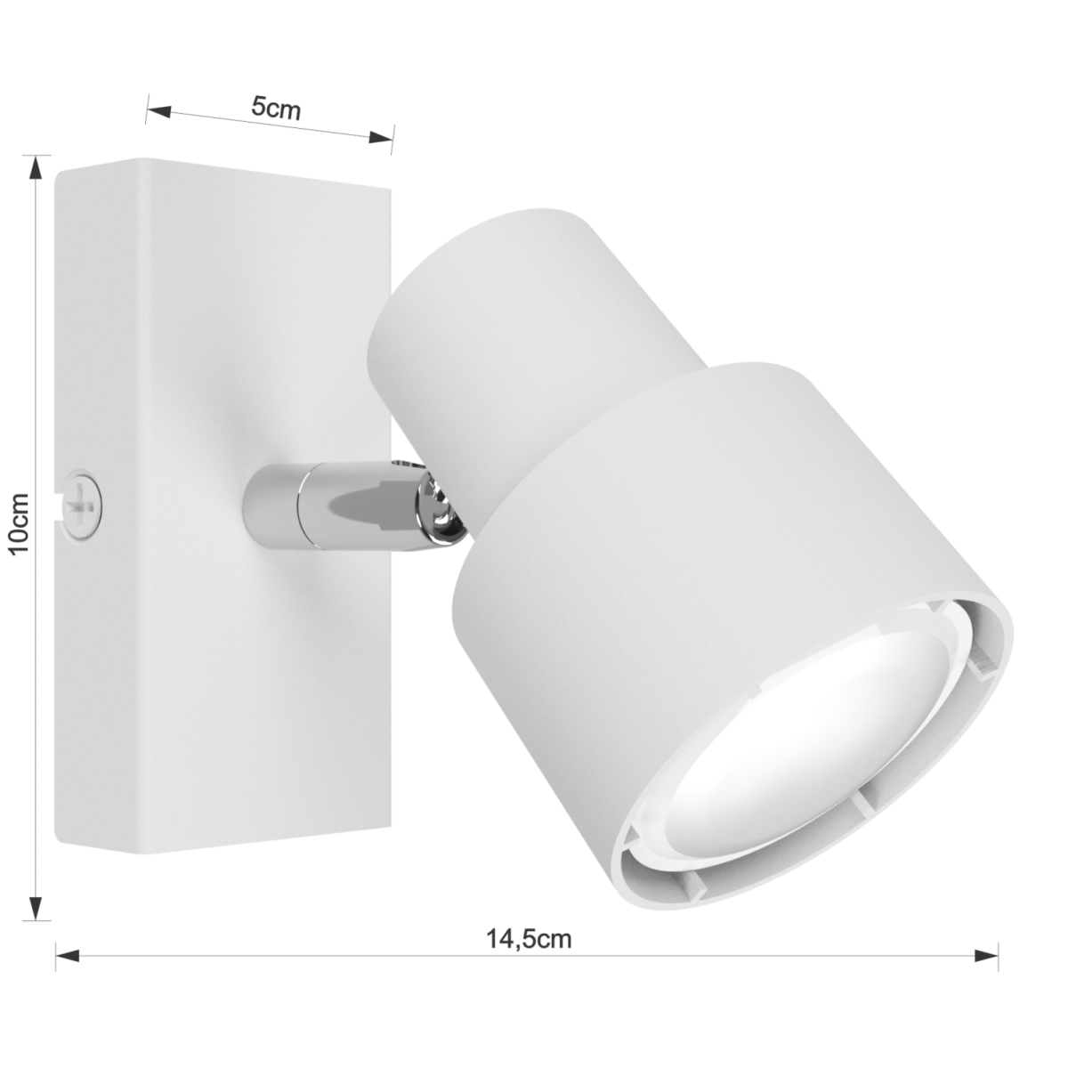 Aplique de diseño moderno con cuerpo metálico en blanco. Su cabezal dirigible permite orientar la luz, ideal para destacar rincones o usar como luz de apoyo.