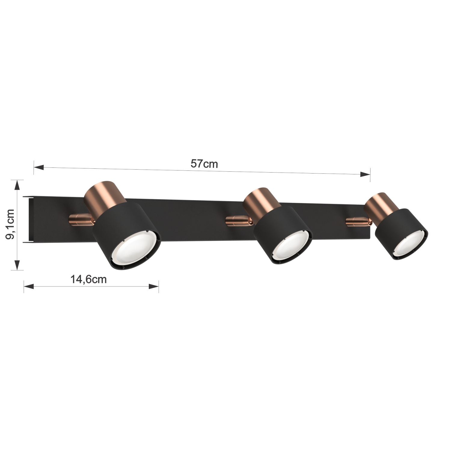 APLIQUE/SISTEMA BOA 3 luces Negro/Cobre Incluye lámparas led
