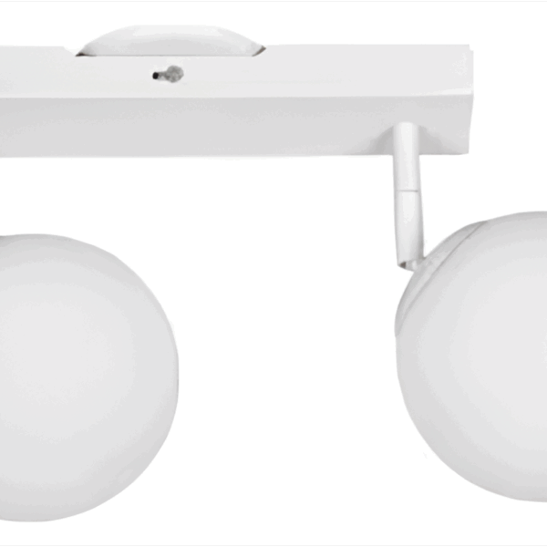 Aplique en negro mate con base rectangular, dos luces G9 y spot móvil para dirigir la iluminación. Tulipas globo opal que ofrecen una luz suave y cálida.