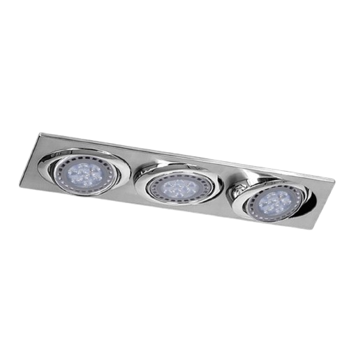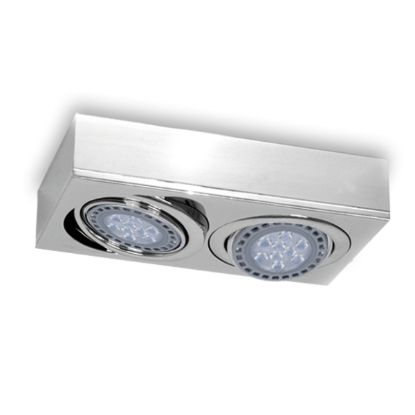 Embutido cardánico rectangular de 2 luces para lámparas LED AR111. Diseño moderno con cabezales orientables, ideal para destacar zonas específicas con iluminación precisa.