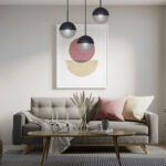 Su base circular sostiene las esferas de manera armónica y cuenta con sistema de altura regulable para adaptarse a la medida de tu espacio. De fabricación nacional, es una opción ideal para dormitorios y livings, aportando calidez y sofisticación.