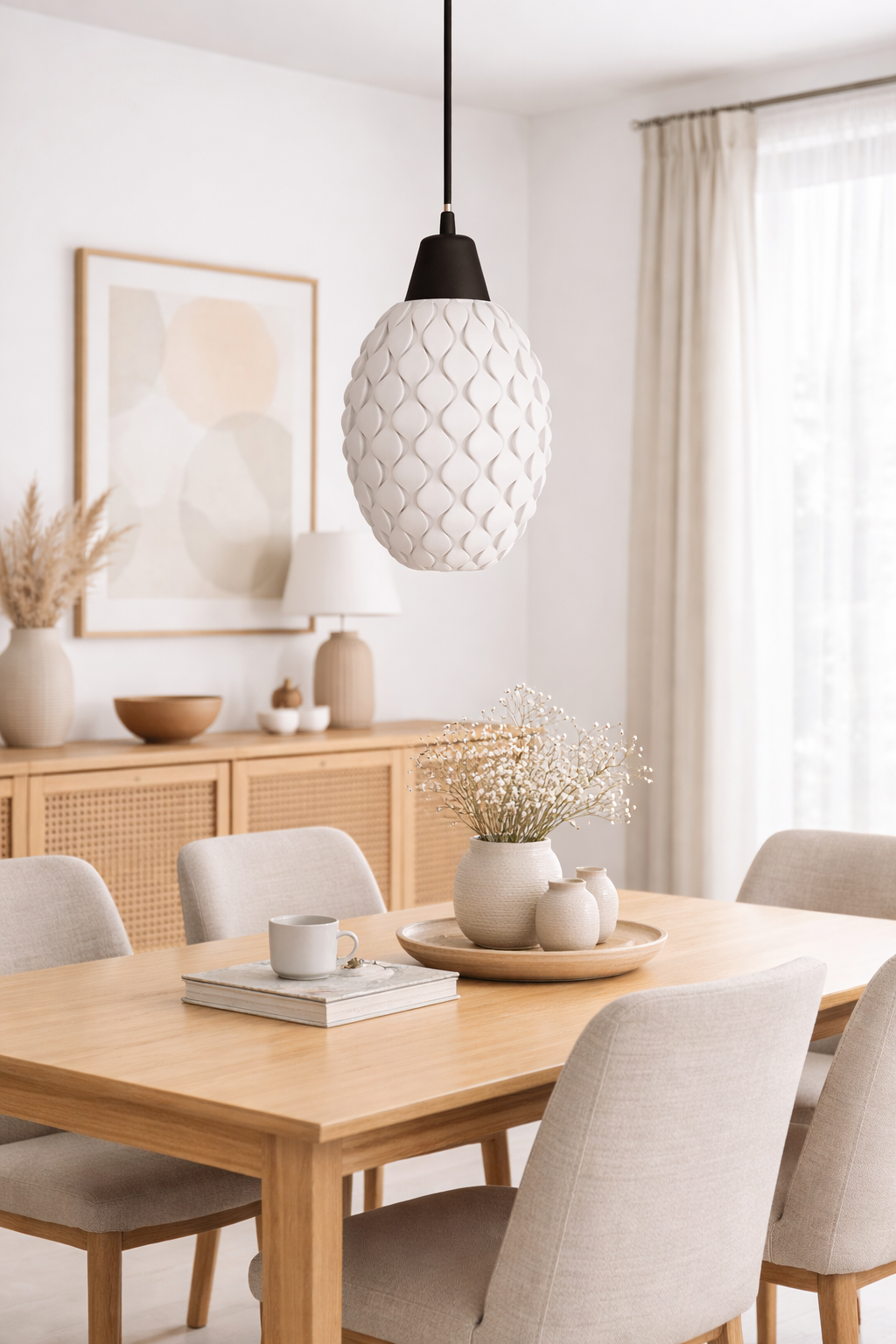 El colgante Oval se destaca por su diseño moderno y orgánico. Su pantalla de forma ovalada con crestas en la parte exterior aporta textura y personalidad, generando un atractivo juego de luz y sombra que realza la iluminación del ambiente. Fabricado en PLA, un material liviano y sostenible, es ideal para sumar estilo en livings, comedores, dormitorios o barras. Su diseño decorativo lo convierte en una pieza versátil que combina con diferentes estilos de interior.