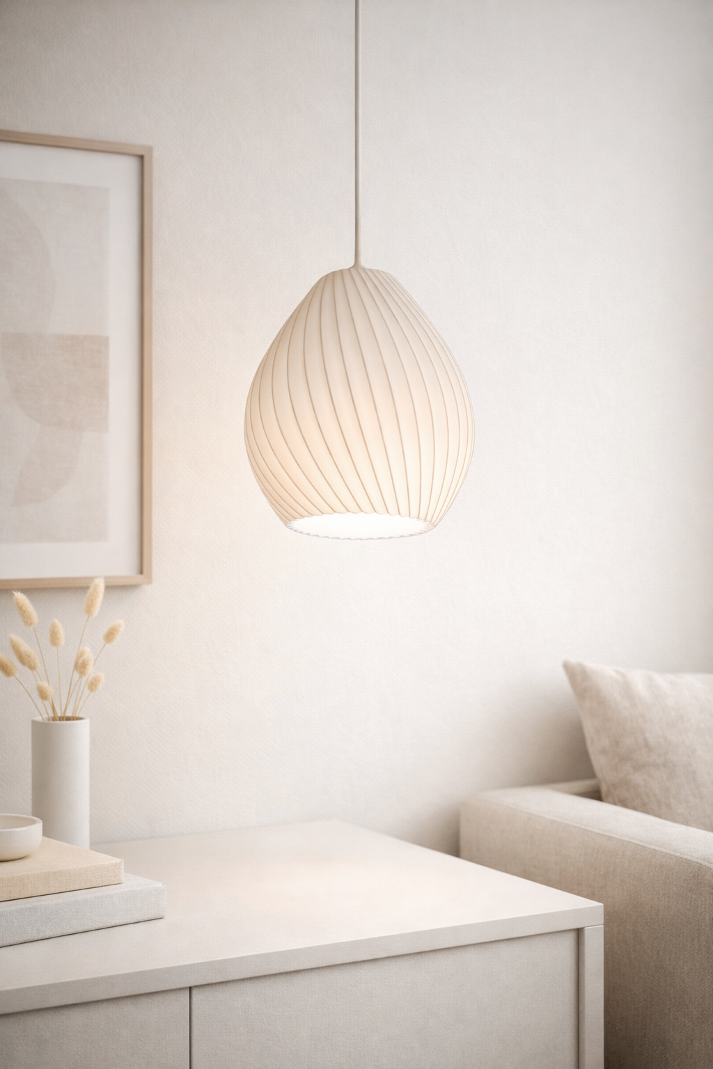 Lámpara colgante de 1 luz fabricada en PLA con diseño moderno en forma de gota espiral. Su estética original y contemporánea genera un efecto visual decorativo y permite una distribución agradable de la luz en el ambiente. Ideal para colocar sobre mesas, barras, islas de cocina o en espacios de estar, aportando un toque de diseño moderno y elegante. Además, cuenta con cable de altura regulable para adaptarse a diferentes tipos de ambientes.