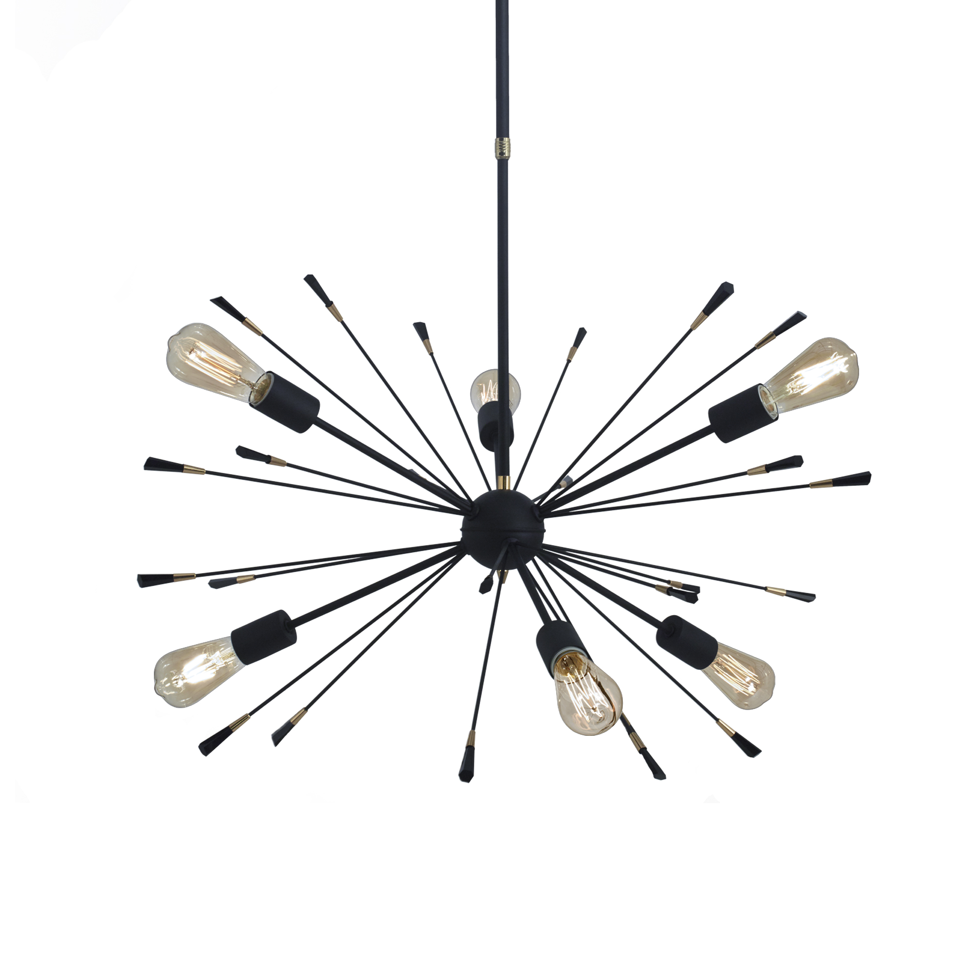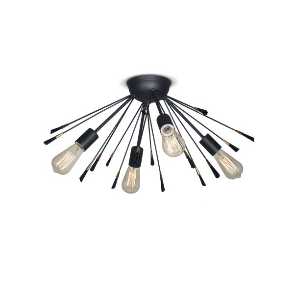 Experimentá un estallido de luz y estilo con la línea Explosión transformará tus espacios en verdaderas obras de arte.Colgante de 6 luces negro. Capitel negro – Transparente.
