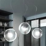 Elegante colgante de diseño simple y moderno, con tulipa globo de vidrio transparente de 30 cm de diámetro y caída lateral que aporta dinamismo visual. Altura regulable para adaptar a diferentes espacios y estilos. Ideal para lámparas decorativas E27.