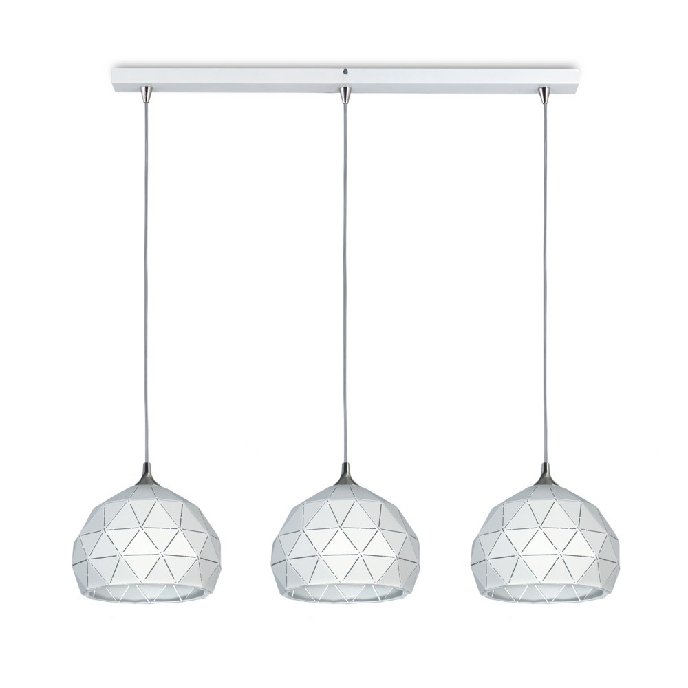 Colgante lineal de 3 luces con tulipas cilíndricas de vidrio y detalles en negro, ideal para ambientes modernos. Ofrece una luz cálida y acogedora gracias a su tono 3000K.