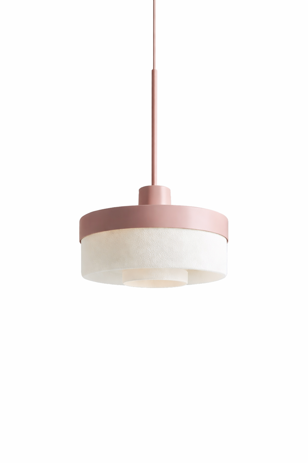 Lámpara colgante de diseño moderno y delicado, ideal para aportar un toque decorativo y una iluminación suave a distintos ambientes. Su estructura circular metálica en color rosa viejo con terminación satinada genera una estética elegante y contemporánea. El difusor de FDM en color tiza con textura tipo panal de abeja permite una difusión homogénea de la luz, creando una iluminación cálida y agradable. Su cable regulable en altura facilita adaptarla a diferentes espacios y necesidades.