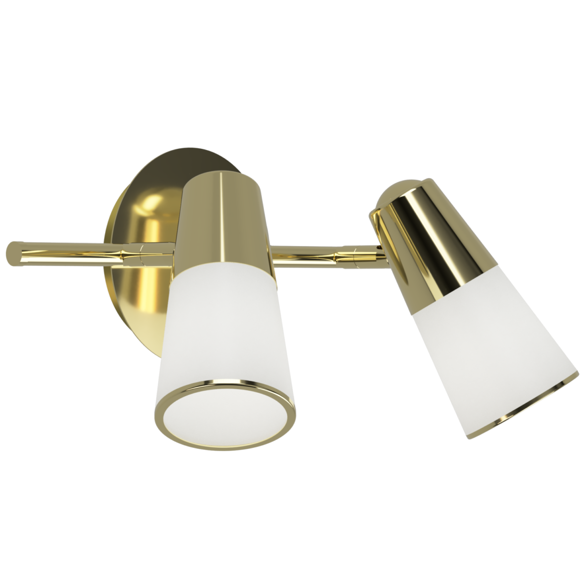 Aplique o barra de 2 luces con estructura metálica en acabado dorado, equipado con cabezales dirigibles que permiten orientar la luz según tus necesidades. Las tulipas de vidrio satinado con borde dorado aportan un toque de elegancia clásica combinada con funcionalidad. Ideal para baños, cocinas, dormitorios, livings, oficinas, salas de estar y vestíbulos.