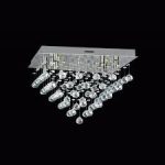 Plafón de 6 luces con base cuadrada de 40 x 40 cm y detalles en strass que realzan su diseño decorativo. Acabado en cromo y compatible con lámparas G9 o G9 LED. Ideal para sumar elegancia e iluminación cálida a tus espacios. No incluye lámparas.