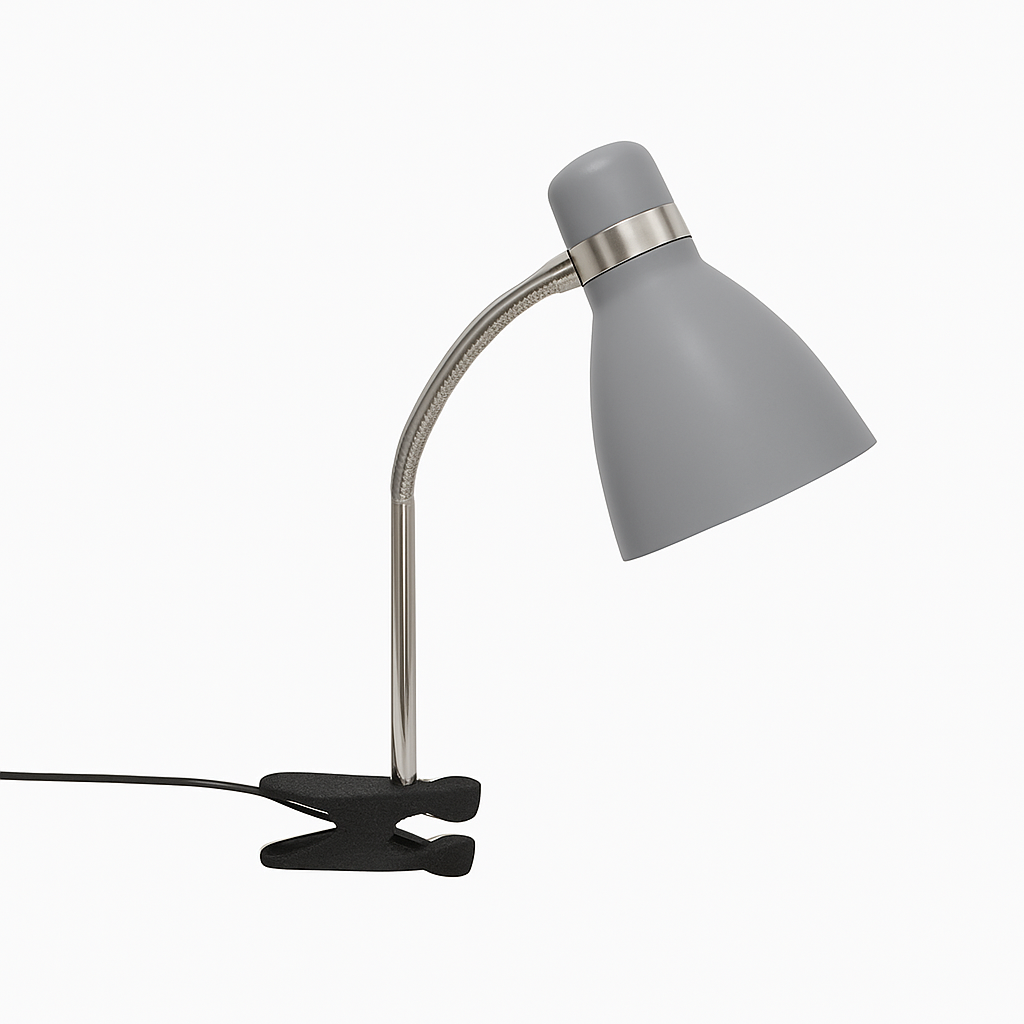 Esta lámpara de escritorio con pinza es un accesorio práctico y versátil que se puede adaptar a diferentes necesidades y espacios. Su construcción en chapa de acero estampada y su brazo flexible la hacen ideal para iluminar áreas de trabajo con precisión y eficiencia.