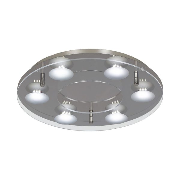 Plafón compacto con difusor de vidrio perlado que ofrece una iluminación suave y uniforme. Ideal para espacios pequeños que buscan un toque moderno y funcional.