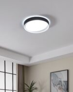 Plafón circular LED de 24W con borde negro y difusor de vidrio interior blanco. Su diseño minimalista y moderno aporta elegancia y sobriedad a cualquier ambiente, ofreciendo una iluminación uniforme y agradable. Ideal para livings, dormitorios, pasillos u oficinas contemporáneas.