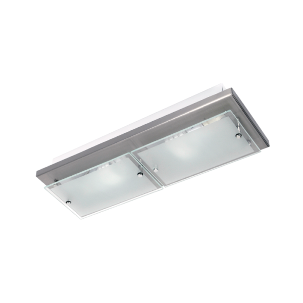Este plafón cuadrado de diseño sobrio y funcional combina una estructura metálica en color negro con un elegante difusor de vidrio satinado que suaviza la luz y evita deslumbramientos. Ideal para quienes buscan una iluminación discreta pero con presencia, su formato compacto lo hace perfecto para espacios medianos o reducidos como cocinas, pasillos, dormitorios o baños.