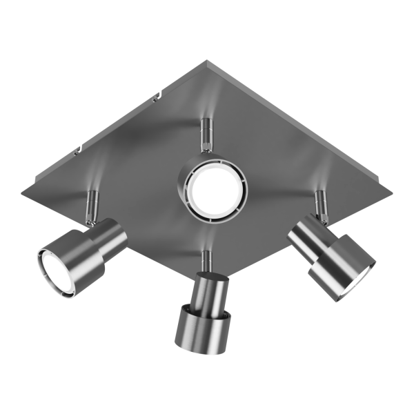Plafón práctico con spots dirigibles y tulipa de vidrio perlada que ofrece una iluminación ajustable y suave, ideal para diversos ambientes.