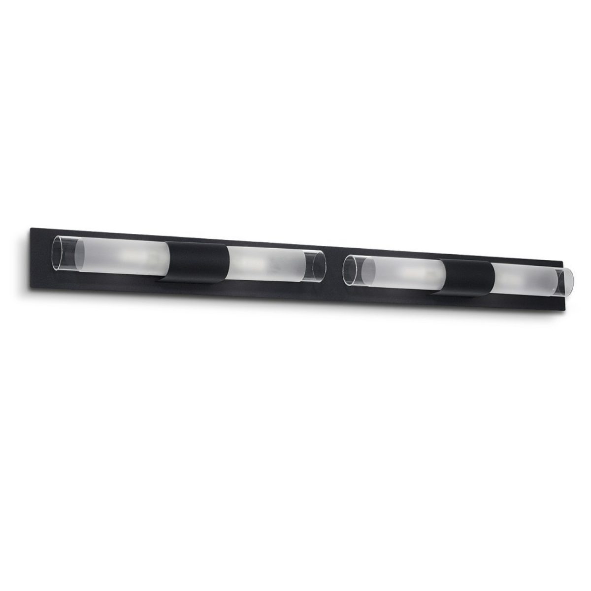 Aplique de pared fijo con diseño moderno y elegante, compuesto por cuatro luces y tulipas de vidrio cilíndricas que aportan estilo y una excelente difusión de la luz. Ideal para iluminar de forma pareja y decorativa diferentes ambientes del hogar. Su formato lineal lo hace perfecto para colocar sobre espejos, en baños, cocinas, dormitorios o livings.