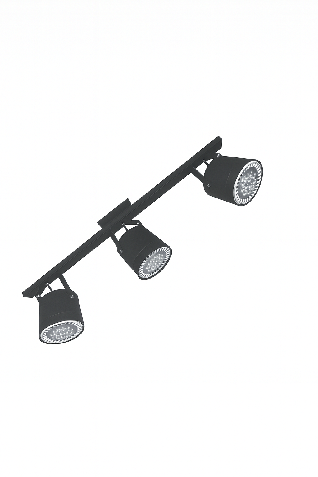 Sistema de iluminación sobre barra de diseño moderno y profesional, ideal para iluminación de acento y focalizada. Incorpora tres spots tipo tacho móviles para lámparas AR111, que permiten orientar la luz con precisión y destacar áreas específicas. Apto para tecnología LED, es una solución robusta y estética para espacios residenciales amplios y, especialmente, comerciales.