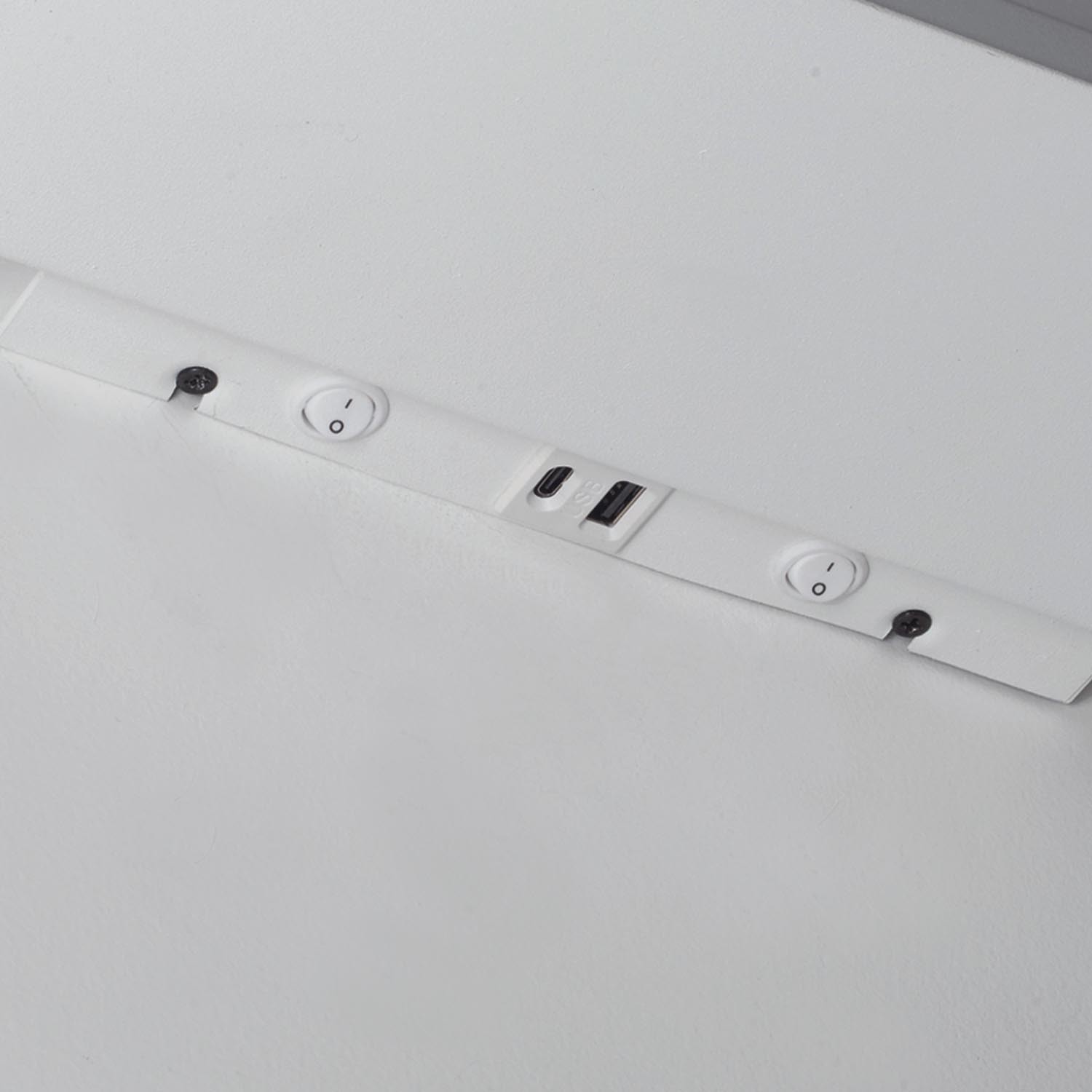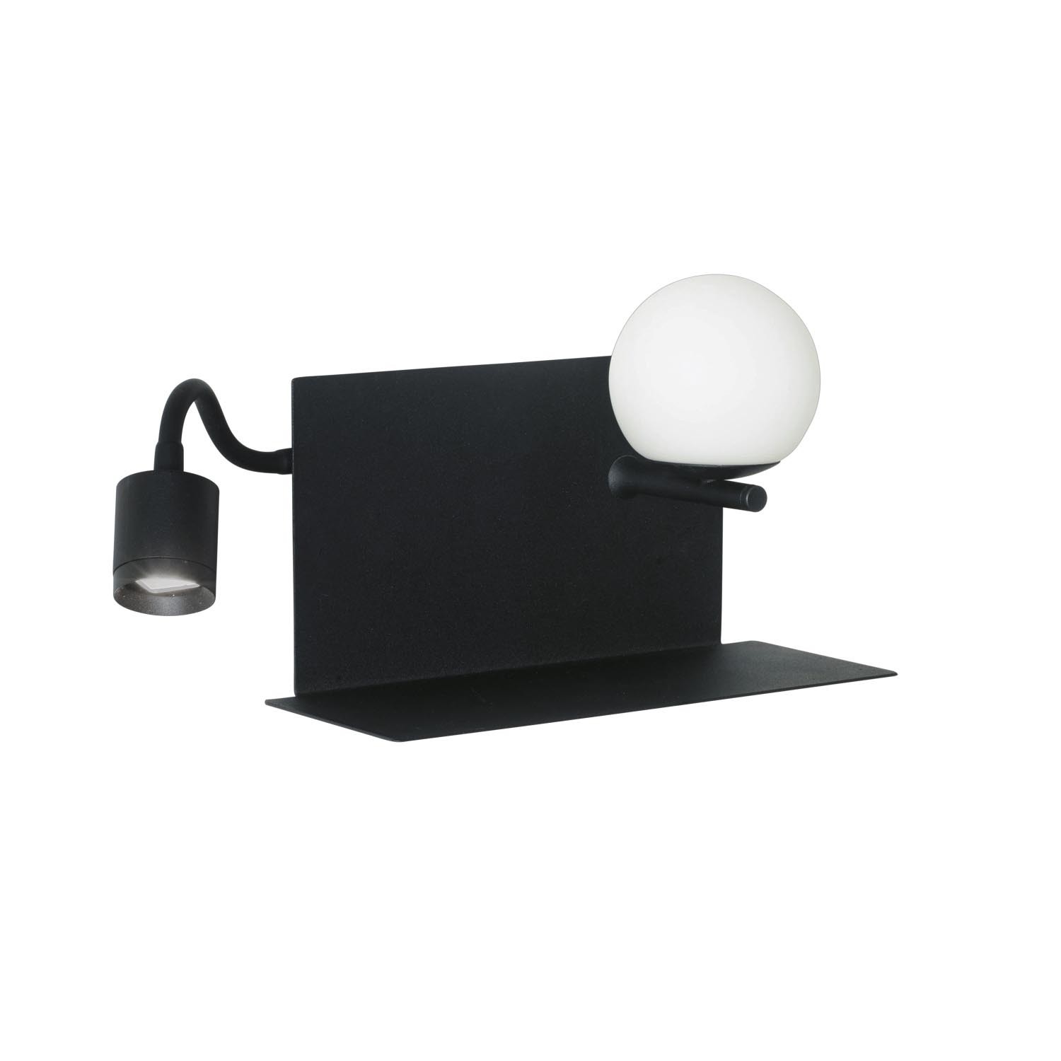 Diseñado especialmente para cabeceras de cama, ideal para espacios pequeños donde no entra una mesita de luz pero no quieres sacrificar estilo ni funcionalidad. Cuenta con doble iluminación independiente: un cabezal LED flexible para lectura y luz ambiente con tulipa de vidrio. Incluye cargador USB y USB-C, además de un práctico estante para apoyar tu smartphone u otros objetos personales.