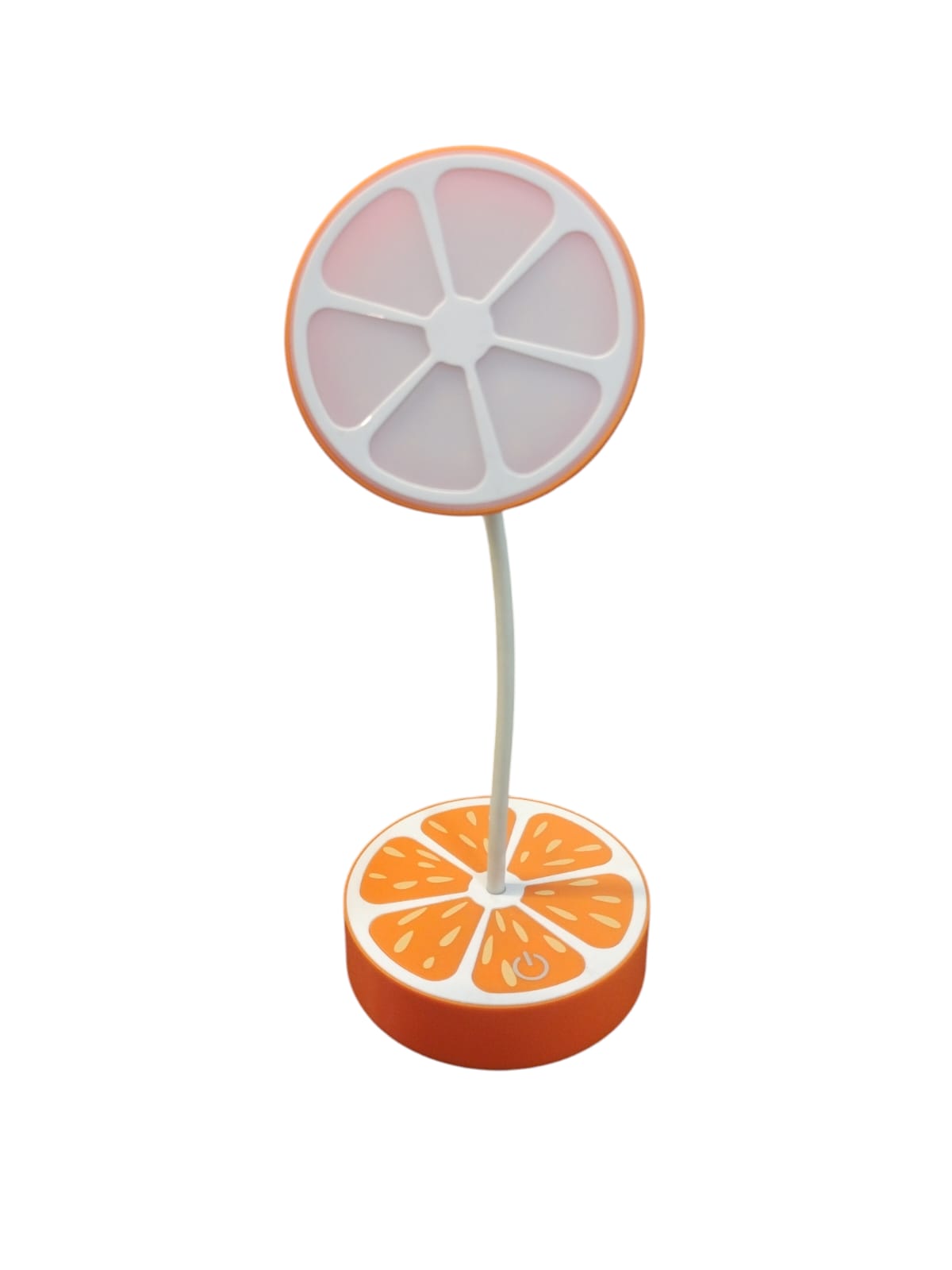 Divertido y funcional, este velador infantil con diseño en forma de naranja aporta color y alegría al cuarto de los más chicos. Cuenta con brazo flexible para orientar la luz y batería recargable por USB para mayor comodidad y movilidad.