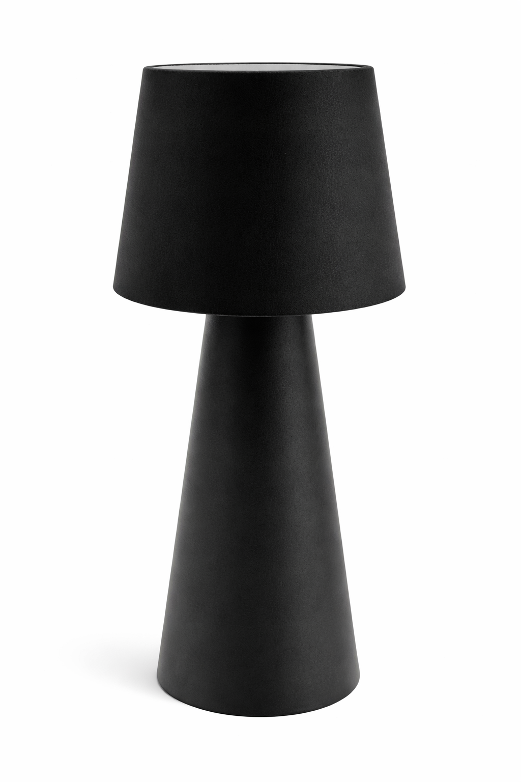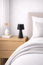 Velador de diseño moderno y minimalista, ideal para sumar estilo y funcionalidad a cualquier ambiente. Su pantalla cónica negra aporta un look elegante y contemporáneo, mientras que su sistema de iluminación con emisión de luz superior e inferior crea una atmósfera cálida y agradable.