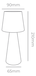 - Medidas: Ø sup. 90 mm | Ø base 65 mm | Altura 210 mm