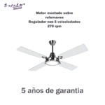 Sus palas metálicas pintadas con acabado epoxi garantizan resistencia y larga vida útil. El motor nacional, inyectado en aluminio y equipado con rulemanes blindados SKF, ofrece un funcionamiento suave, equilibrado y sin ruidos molestos. Su estética moderna lo convierte en un elemento que destaca tanto por su eficiencia como por su presencia.