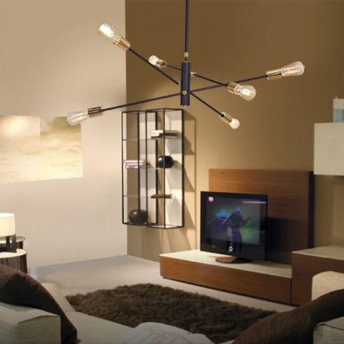 COLGANTE VINTAGE 6 luces Negro/Oro apto led